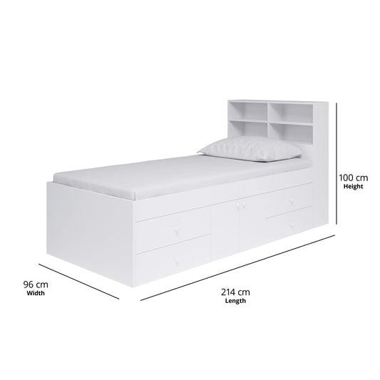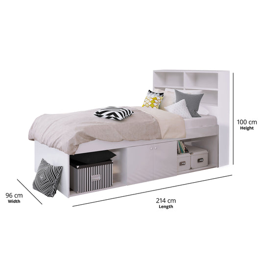 Captain's Single 3ft Cabin Bed with bookcase headboard White