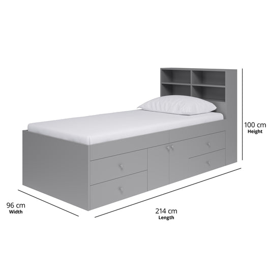 Captain's Single 3ft Cabin Bed with bookcase headboard Grey