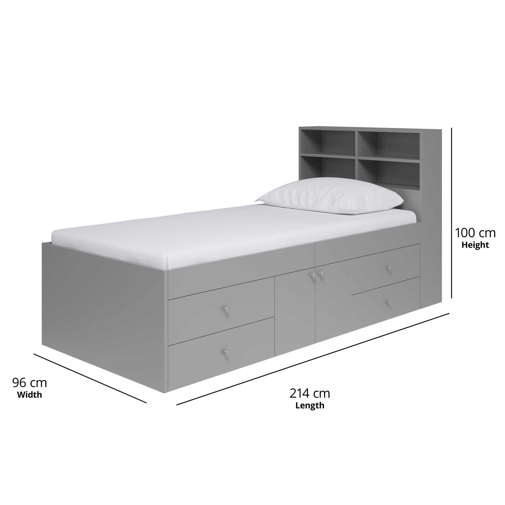 - Captain's Single 3ft Cabin Bed with bookcase headboard Grey